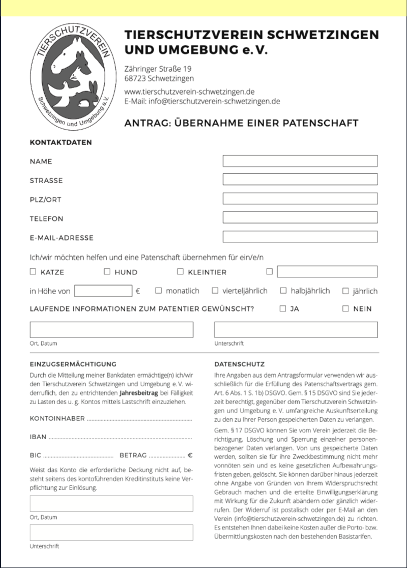 Sie wollen uns unterstützen und Mitglied im Tierschutzverein Schwetzingen & Umgebung e.V. werden?