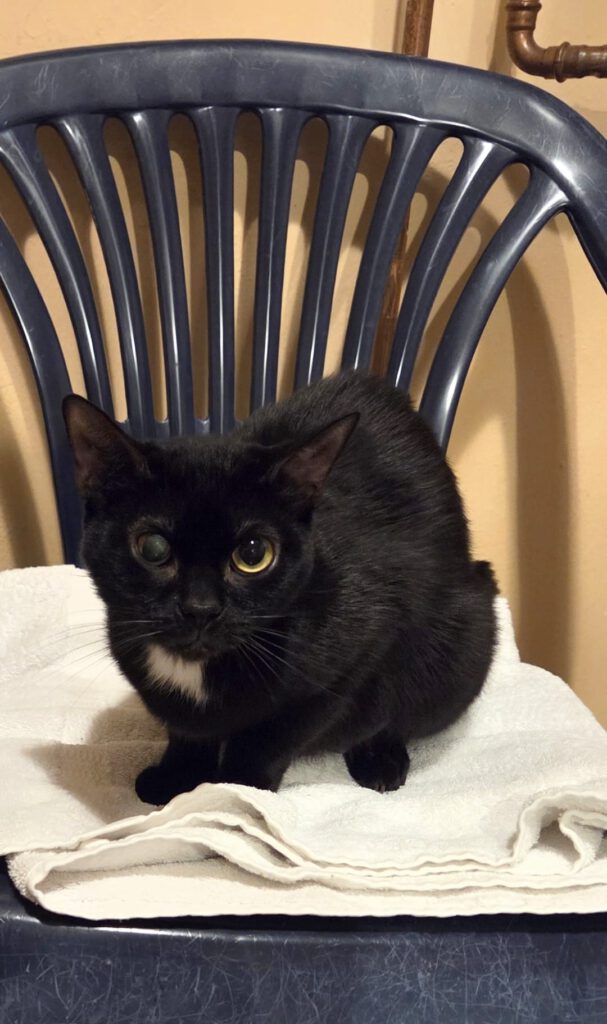 Mia, zierliche, liebe, schwarze Kätzin mit weißen Brustlatz, 2-3 Jahre alt, kastriert, gechipt, FIV und Leukose negativ getestet und mehrfach entwurmt, sucht ein neues Zuhause. Bevorzugt ein Zuhause in der Wohnung oder Haus, mit katzensicherem Balkon oder gesichertem Hof oder Garten, da sie auf dem rechten Auge blind ist. In einer ihr bekannten Umgebung kommt sie mit dieser Behinderung sehr gut zurecht. Außerdem möchte sie gerne Einzelprinzessin bleiben. Wenn Kinder im Haushalt leben, sollten diese bereits schon größer sein. Mia hat ihre erste Impfung und kann bald in ein neues Zuhause umziehen.