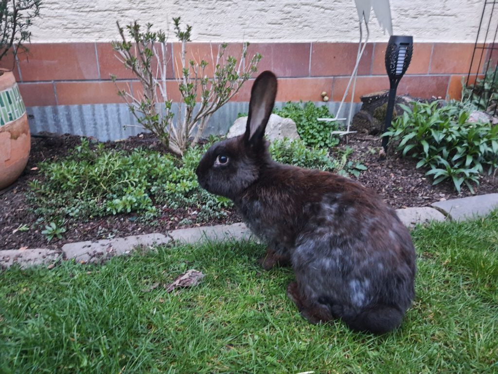 Mira ist eine freundliche Häsin, die Streicheleinheiten genießt. Sie ist ebenso neugierig und aufgeschlossen. Auch zu unseren Hunden ist Mira kontaktfreudig und zeigt keine Angst. Gehegehygiene wird auch von ihr ganz hoch angeschrieben. Sie verrichtet beides ihrer Geschäfte ausschließlich in die Kaninchentoilette. Mira ist höchstwahrscheinlich trächtig und wird in den nächsten Tagen ihre Babys zur Welt bringen. Nach der Aufzucht ihrer Babys, in ca. 14 Wochen sucht sie ein liebevolles, artgerechtes Zuhause in dem sie viel Liebe und Zuneigung geschenkt bekommt. Sie kann ab ca. Juli / August zu einem lieben Kastraten oder in Begleitung eines unserer Kaninchen (vielleicht auch eines ihrer Kinder) ausziehen.